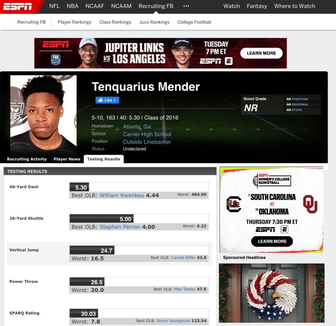Before my life took a different turn, I was a student-athlete with real opportunity. I was listed in the ESPN College Football Recruiting Database, recognized as part of the Class of 2016, and added to the Carver High School football roster in Atlanta in 2014. Football was my passion, and I had the chance to go far. But poor decisions and inconsistency cost me everything. I take full responsibility for that. No one forced that life on me I chose it, and I accepted the consequences like a man.